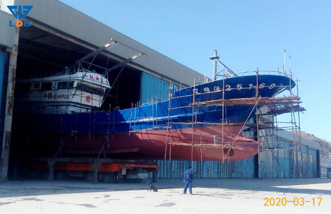 3月17日,在遼寧東寶集團(tuán)船舶制造有限公司,一艘新建39.8米漁船涂裝工序順利完工,準(zhǔn)備進(jìn)行下水前的各項(xiàng)檢測(cè)。 March 17, in liaoning dongbao group shipbuilding co., LTD., a newly built 39.8-meter fishing boat coating process was successfully completed, ready to launch the various tests.