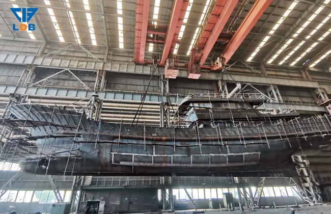 2020年7月末,在遼寧東寶重工有限公司生產(chǎn)車間內(nèi),又一條38.88米漁船順利完成下胎任務(wù),并轉(zhuǎn)入下到工序進(jìn)行生產(chǎn)。該漁船是我公司承接多條漁船的其中一艘,我公司近年來(lái)承接了多個(gè)種類漁船的建造工程。船東對(duì)漁船質(zhì)量、生產(chǎn)建造工期及日后使用,都表達(dá)出滿意的態(tài)度。并繼續(xù)和我公司簽訂業(yè)務(wù)合作合同。 In July 2020 . In the workshop of Liaoning Dongbao Heavy Industry Co., LTD., another 38.88-meter fishing boat successfully completed the downwheel task and transferred to the down-to-down process for production. This fishing boat is one of many fishing boats undertaken by our company. In recent years, our company has undertaken construction projects of many kinds of fishing boats. Shipowners expressed their satisfaction with the quality, construction period and future use of the vessel. And continue to sign business cooperation contracts with our company.