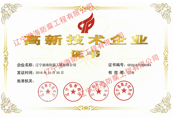 高新技術(shù)企業(yè)證書(防腐公司)