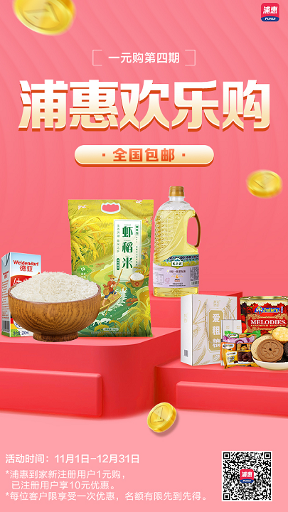 近日,遼寧東寶集團(tuán)攜手浦發(fā)銀行優(yōu)惠到家,為您推出【浦惠歡樂(lè)購(gòu)】(1元購(gòu)優(yōu)惠活動(dòng))。 下載【浦惠到家APP】新注冊(cè)用戶即可參加1元購(gòu)活動(dòng)!