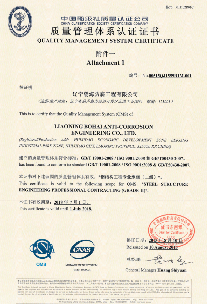 質(zhì)量體系認(rèn)證證書/Quality system certification